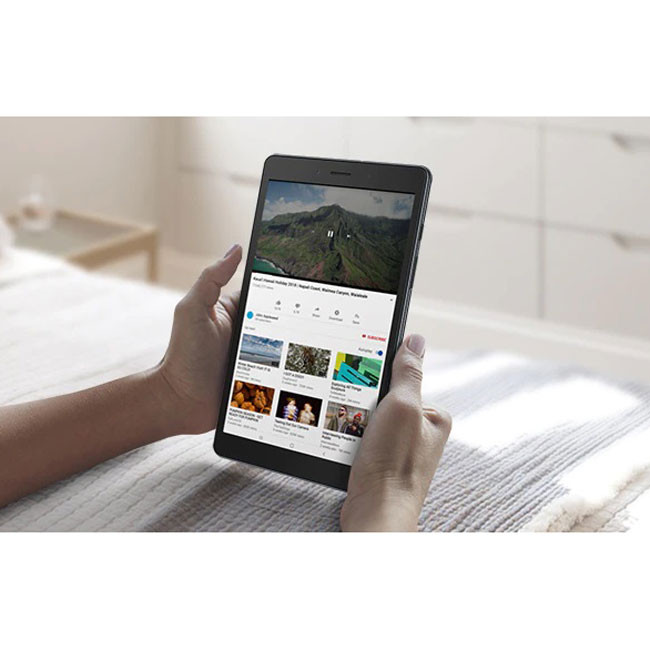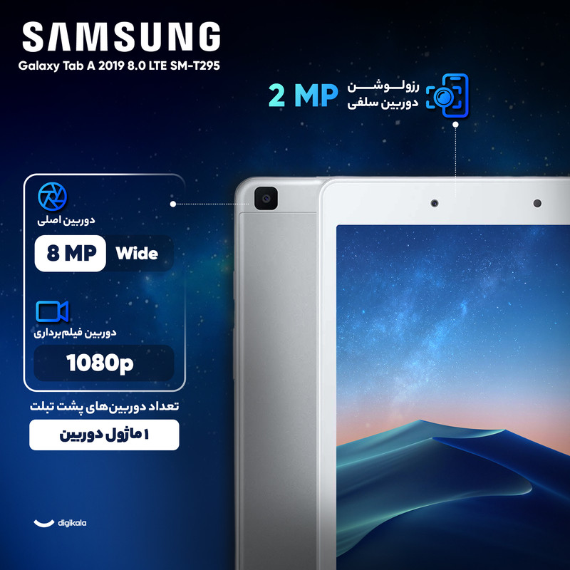 تبلت Samsung Galaxy Tab A 8.0 یکی از تبلت های میان رده سامسونگ به حساب می رود که در سال 2019 میلادی رونمایی و روانه بازار شد. مشخصات سخت افزاری و نرم افزاری متوسط و حضور برخی قابلیت های کاربردی، Tab A 8.0 را به گزینه ای مناسب در میان تبلت های میان رده تبدیل کرده است. صفحه نمایش Tab A 8.0، صفحه نمایشی 8.0 اینچ و از نوع TFT می باشد. رزولوشن این صفحه نمایش برابر با 1280 × 800 پیکسل و تراکم پیکسلی آن نیز برابر با 189 پیکسل بر اینچ می باشد. چیپست به کار گرفته شده در Tab A 8.0، چیپست میان رده Snapdragon 429 می باشد که از یک پردازنده هشت هسته با کلاک 2.0 گیگاهرتز و همچنین پرردازنده گرافیکی Adreno 504 تشکیل شده است. در نظر گرفته شدن حافظه رم 2 گیگابایتی در کنار این چیپست میان رده، قدرت پردازشی متوسطی را برای Tab A 8.0 به ارمغان می آورد به طوری که این تبلت قادر به اجرا بازی ها و برنامه های نسبتا سنگین نیز می باشد. حافظه داخلی Tab A 8.0 برابر با 32 گیگابایت می باشد که البته افزایش آن تا 1000 گیگابایت دیگر نیز به کمک کارت های حافظه جانبی، امکان پذیر می باشد. سامسونگ تبلت جدید خود را به یک دوربین 8 مگاپیکسل در قسمت پشت تبلت و به عنوان دوربین اصلی مجهز کرده است در حالی که در قسمت جلو تبلت نیز یک دوربین 2 مگاپیکسل به عنوان دوربین سلفی تبلت به کار گرفته شده است. از دیگر ویژگی های تبلت میان رده و جدید سامسونگ می توان به سیستم عامل Android 9.0 PIE، درگاه MICRO USB و باتری قدرتمند 5100 میلی آمپر ساعت، اشاره کرد. خرید تبلت Samsung Galaxy Tab A 8.0 به کاربرانی که قصد انجام کارهای روزمره خود یا اجرا برخی برنامه های نه چندان سنگین را در صفحه نمایش معمولی و با کیفیت Tab A 8.0 داشته و به تماشای فیلم و ویدیو در تبلت نیز علاقه مند می باشند، پیشنهاد می شود.