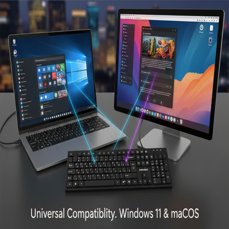 ۳. آیا کیبورد فراسو ۲۲۴۴ با ویندوز ۱۱ و مک سازگاری دارد؟ بله؛ این کیبورد کاملاً Plug & Play است. به این معنا که بلافاصله پس از اتصال به پورت USB توسط تمامی سیستمعاملها از جمله ویندوز (7, 10, 11)، مک و لینوکس بدون نیاز به نصب هیچ نرمافزاری شناسایی میشود.